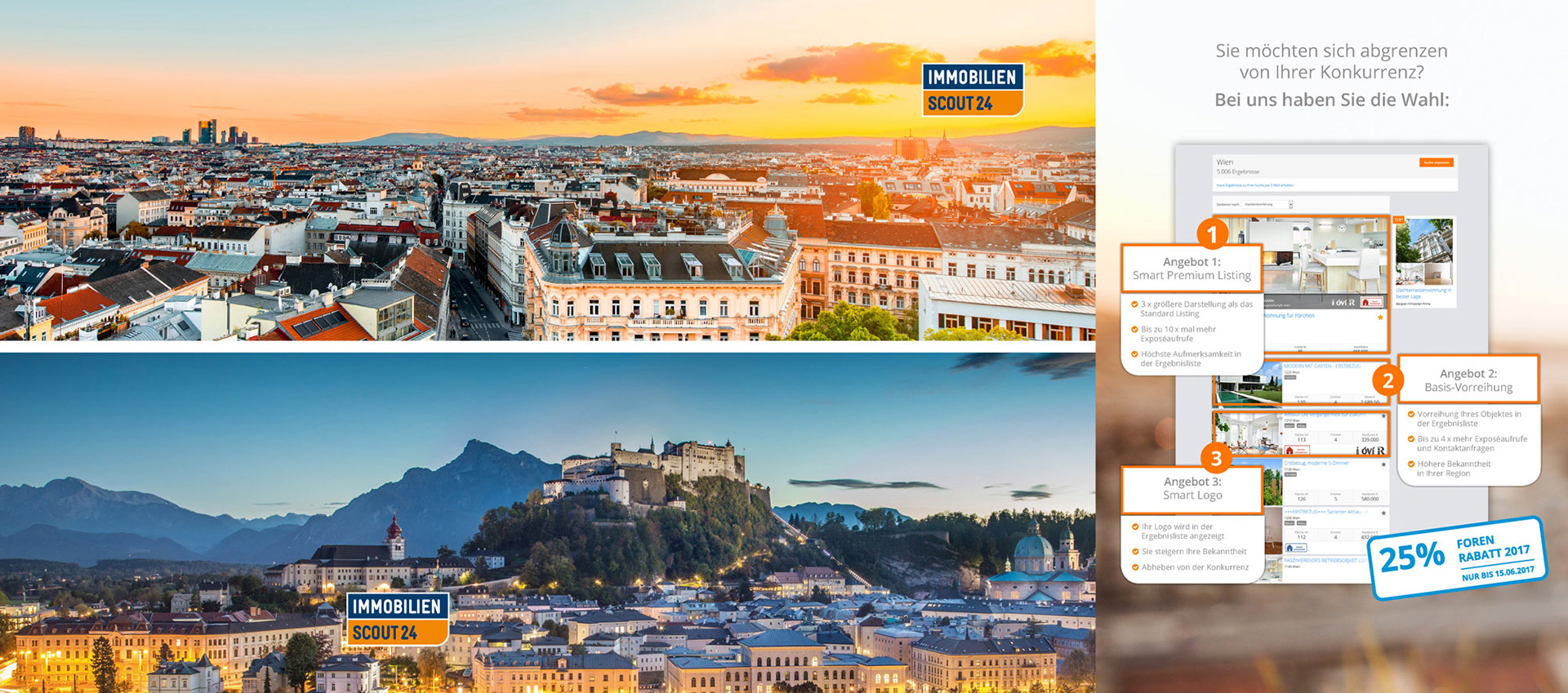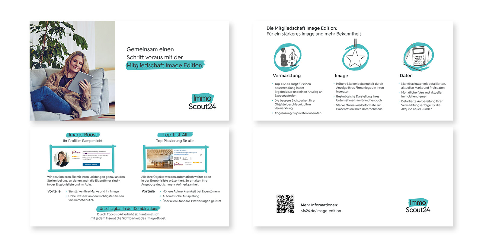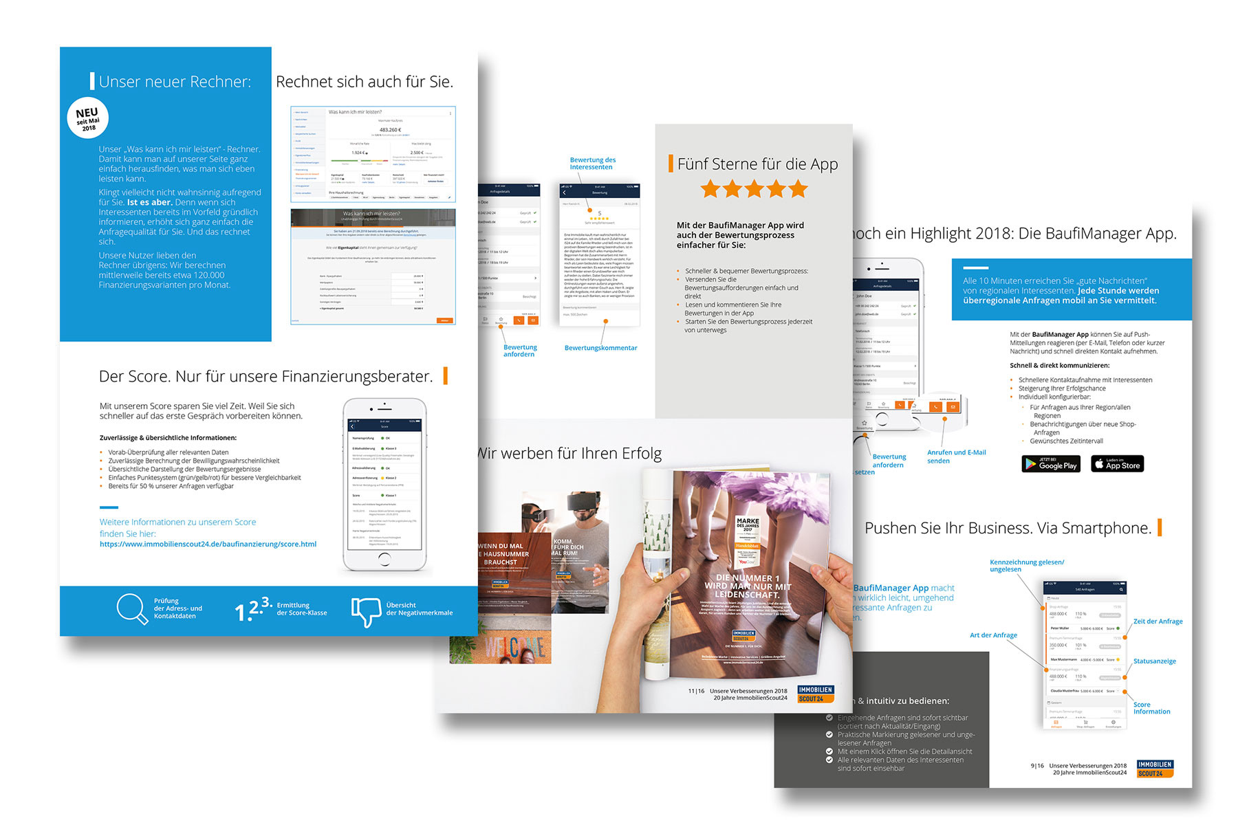 Eine Auswahl des Corporate Designs für ImmoScout24 Deutschland & Österreich.